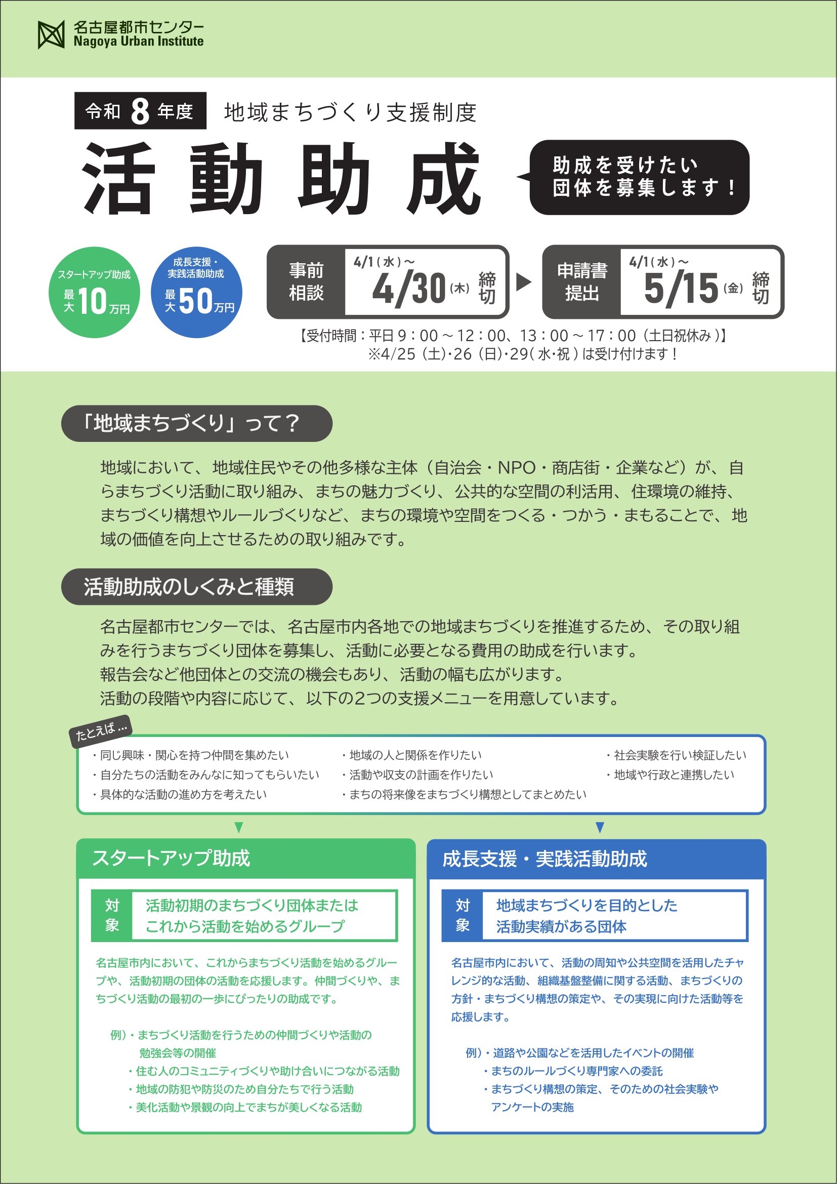 令和8年度 地域まちづくり支援制度・スタートアップ助成 募集開始します。