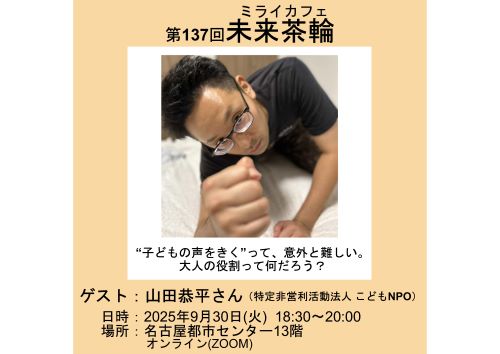 まちづくりの新しい場『フューチャーセンター』をキーワードに、「金山か未来に向けて新たなことを興したい」「未来志向で前向きに関わりながら創発的に進めたい」という想いで、まちづくりびとを中心とした「未来茶輪マスターズ」が主体となって「未来茶輪」を開催しています。